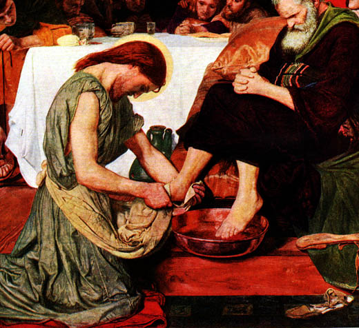 Jesus, on returning to his disciples in so humble a manner, addressed them a few words of reproach on the subject of the dispute which had arisen between them and said among other things, that he himself was their servant, and that they were to sit down, for him to wash their feet. They sat down, therefore, in the same order as they had sat at table. Jesus went from one to the other, poured water from the basin which John carried on the feet of each, and then, taking the end of the towel where with he was girded, wiped them. Most loving and tender was the manner of our Lord while thus humbling himself at the feet of his Apostles.
